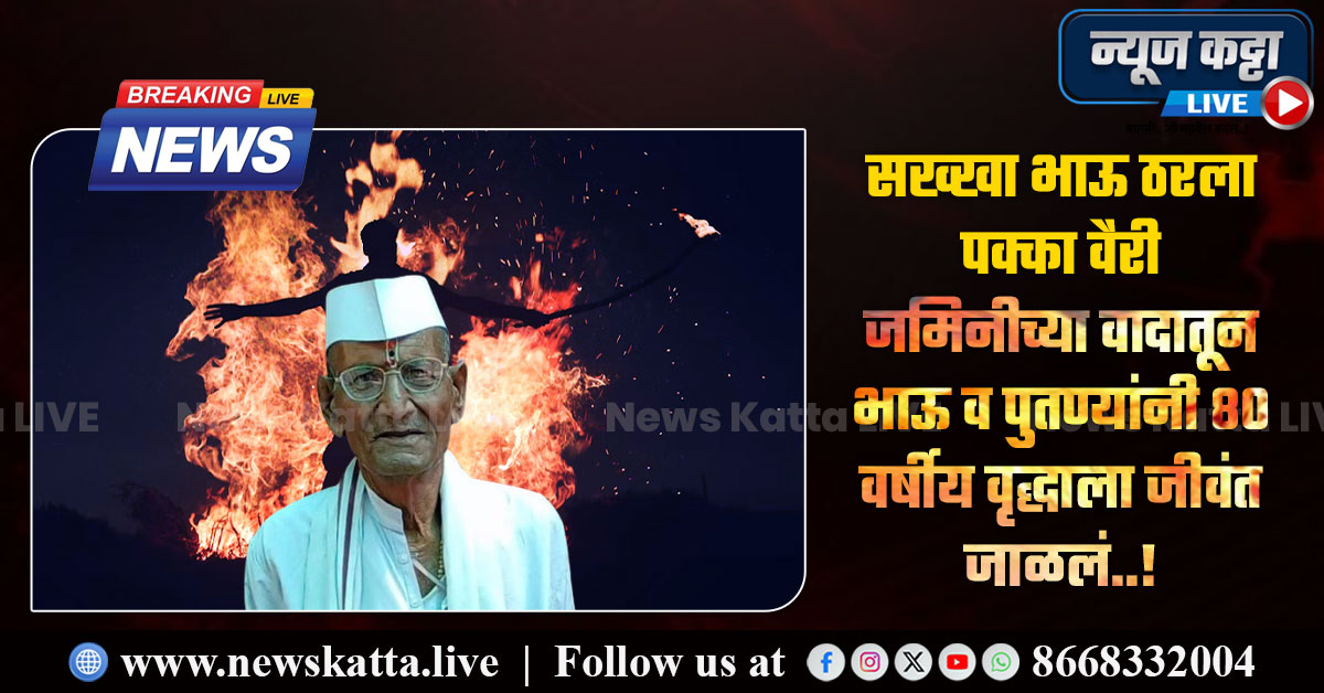 CRIME BREAKING : सख्खा भाऊ ठरला पक्का वैरी; जमिनीच्या वादातून भाऊ व पुतण्यांनी ८० वर्षीय वृद्धाला जीवंत जाळलं..!