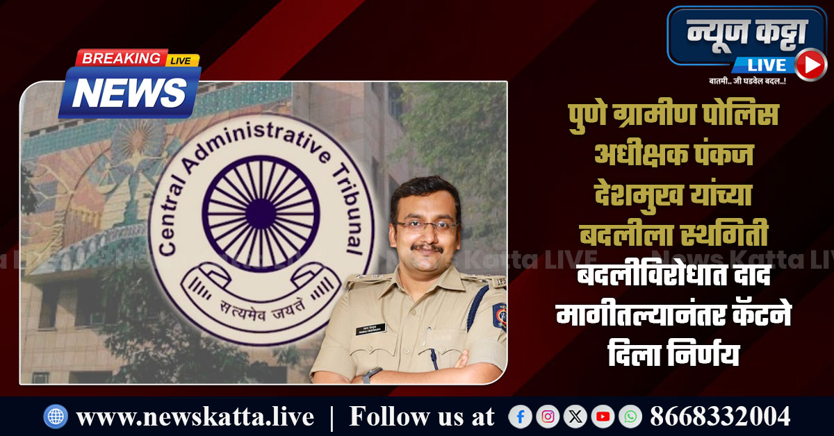 BIG NEWS : पुणे ग्रामीण पोलिस अधीक्षक पंकज देशमुख यांच्या बदलीला स्थगिती; बदलीविरोधात दाद मागीतल्यानंतर कॅटने दिला निर्णय