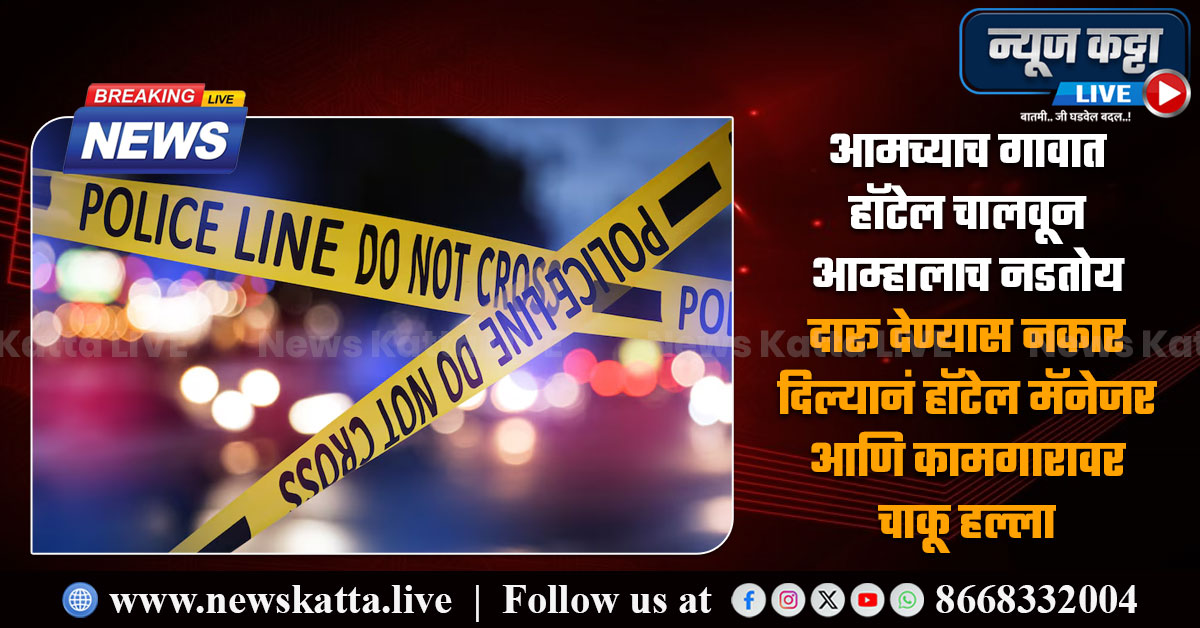बारामती : न्यूज कट्टा दारू देत नसल्याच्या रागातून हॉटेलमध्ये घुसून हॉटेल मॅनेजर व कामगारावर चाकूनं हल्ला केल्याची घटना बारामती तालुक्यातील कऱ्हावागज येथे घडली आहे. आमच्या