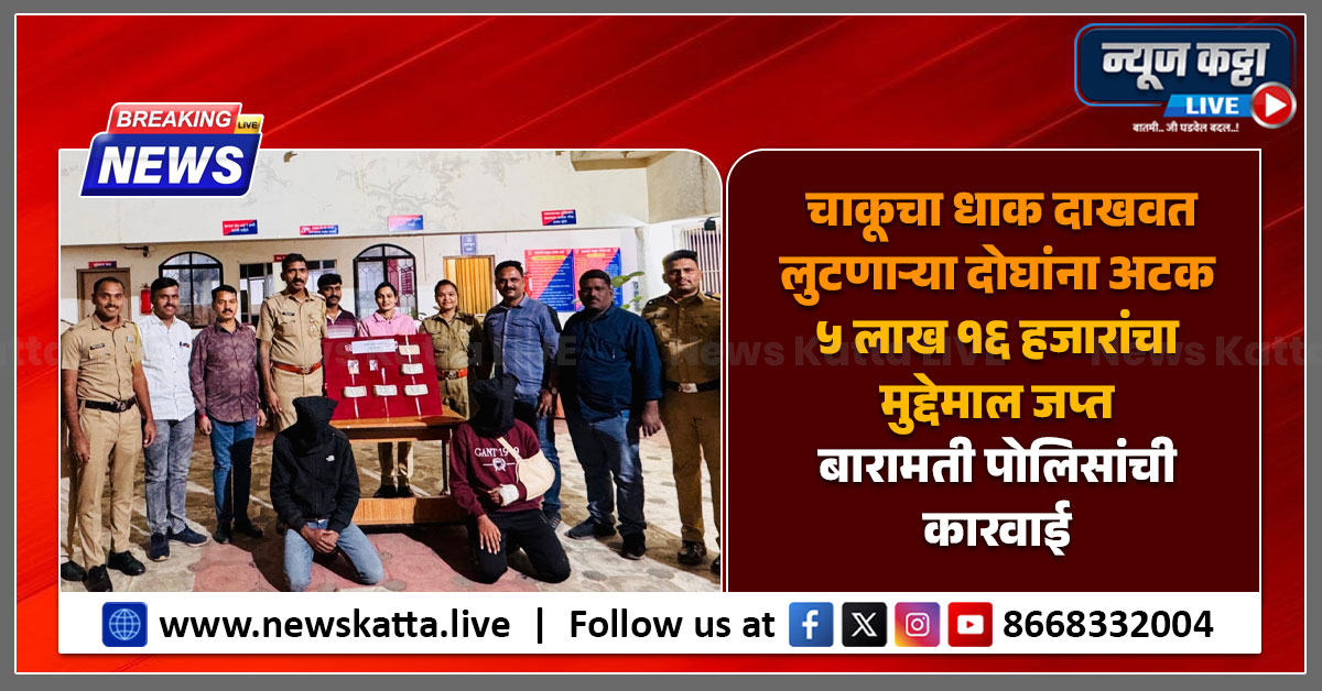 BARAMATI CRIME : चाकूचा धाक दाखवत लुटणाऱ्या दोघांना अटक; ५ लाख १६ हजारांचा मुद्देमाल जप्त, बारामती पोलिसांची कारवाई