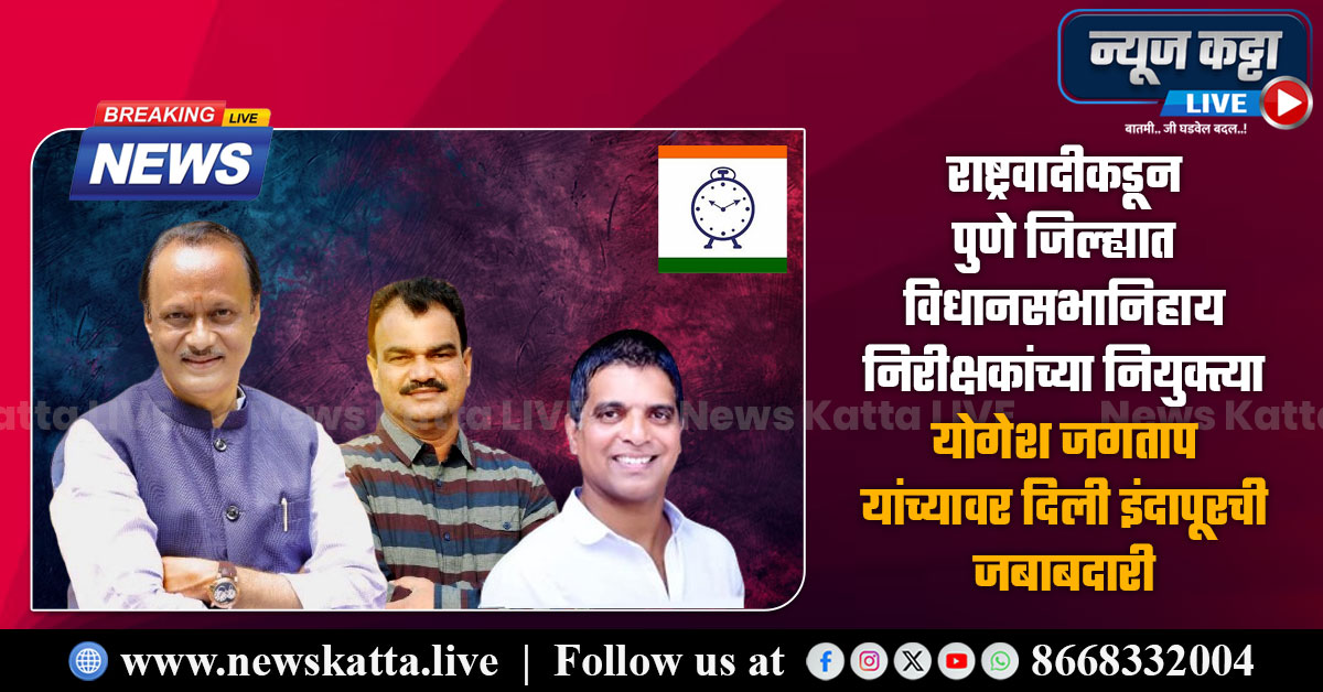 ASSEMBLY ELECTION : राष्ट्रवादीकडून पुणे जिल्ह्यात विधानसभानिहाय निरीक्षकांच्या नियुक्त्या; योगेश जगताप यांच्यावर दिली इंदापूरची जबाबदारी
