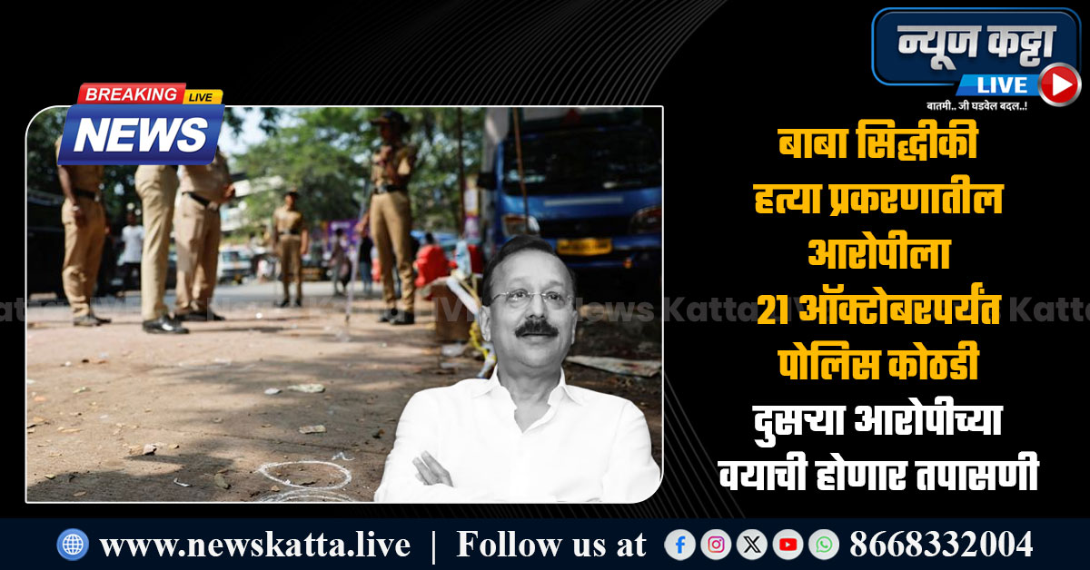 माजी मंत्री बाबा सिद्धीकी यांची काल रात्री गोळ्या घालून हत्या करण्यात आली. या प्रकरणात गुरमैल सिंग आणि धर्मराज कश्यप या दोघांना अटक करण्यात आली आहे. या दोघांनाही आज न्यायालयात हजर करण्यात आले. पोलिसांकडून या आरोपींना १४ दिवसांची पोलिस कोठडी द्यावी अशी मागणी करण्यात आली होती. मात्र आरोपींच्या वकिलांनी धर्मराज कश्यप हा अल्पवयीन असल्याचा युक्तिवाद करत त्याला वेगळी वागणूक द्यावी अशी मागणी केली. परंतु पोलिसांनी संबंधित आरोपी हा सज्ञान असल्याचं न्यायालयात सांगितलं.
