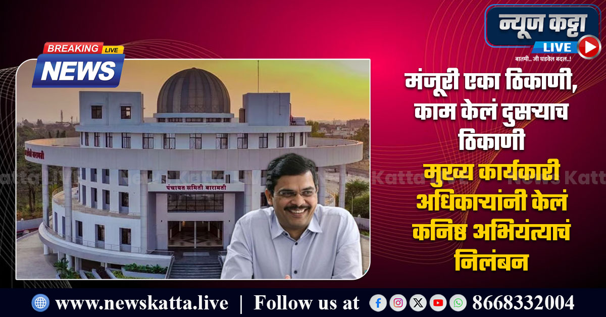 BARAMATI BREAKING : मंजूरी एका ठिकाणी, काम केलं दुसऱ्याच ठिकाणी; मुख्य कार्यकारी अधिकाऱ्यांनी केलं कनिष्ठ अभियंत्याचं निलंबन