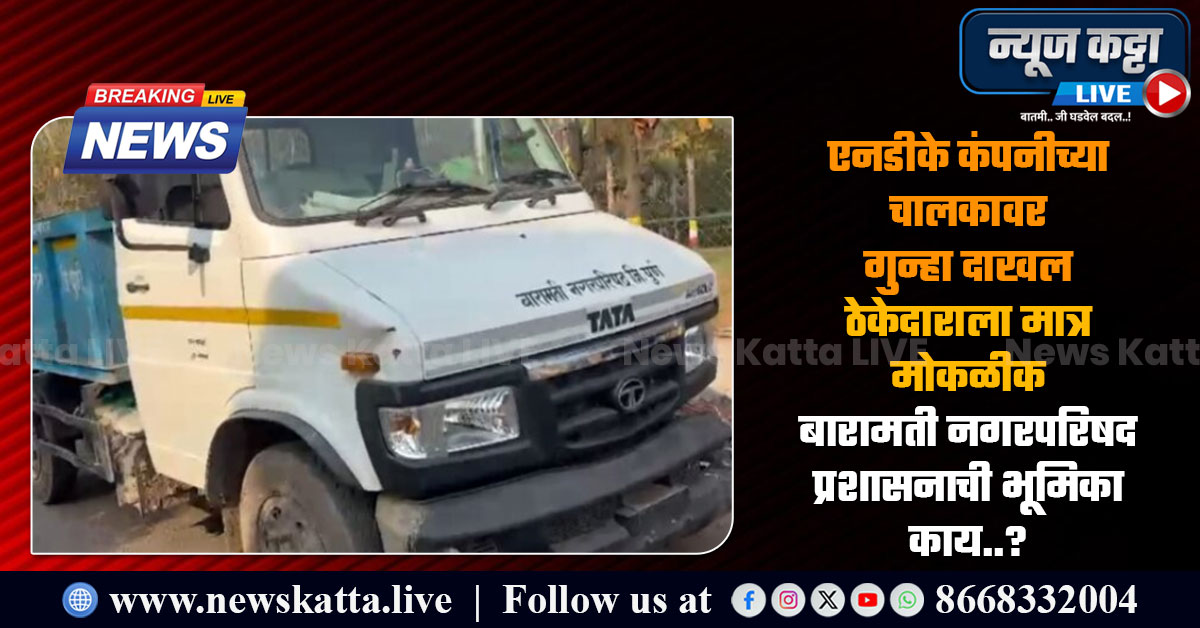 मुलीला शाळेत सोडण्यासाठी निघालेल्या पालकाच्या दुचाकीला धडक देणाऱ्या बारामती नगरपरिषदेच्या कचरा संकलित करणाऱ्या वाहनावरील चालकावर बारामती शहर पोलिसांनी गुन्हा दाखल केला आहे. मात्र एनडीके कंपनीच्या संचालकावर कोणतीही कारवाई झालेली नाही. त्यामुळे आता बारामती नगरपरिषद प्रशासन वारंवार अपघातास कारणीभूत ठरलेल्या एनडीके कंपनीबाबत काय भूमिका घेणार असा सवाल उपस्थित होत आहे.