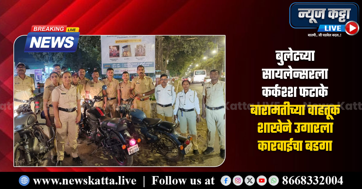 बारामती वाहतूक शाखेने स्वच्छ, सुंदर आणि हरित असलेल्या बारामती शहरात आता ‘शांतता व सुव्यवस्था’ राखण्यासाठी पुढाकार घेतला आहे. कर्कश्श आणि मोठा फटाका आवाज असलेल्या बुलेट ताब्यात घेत त्यांचे सायलेन्सर काढून टाकण्याची मोहीम वाहतूक पोलिसांनी हाती घेतली आहे. मागील दोन दिवसात सुमारे १३ बुलेटचे सायलेन्सर जमा करून दंडात्मक कारवाई करण्यात आली आहे.