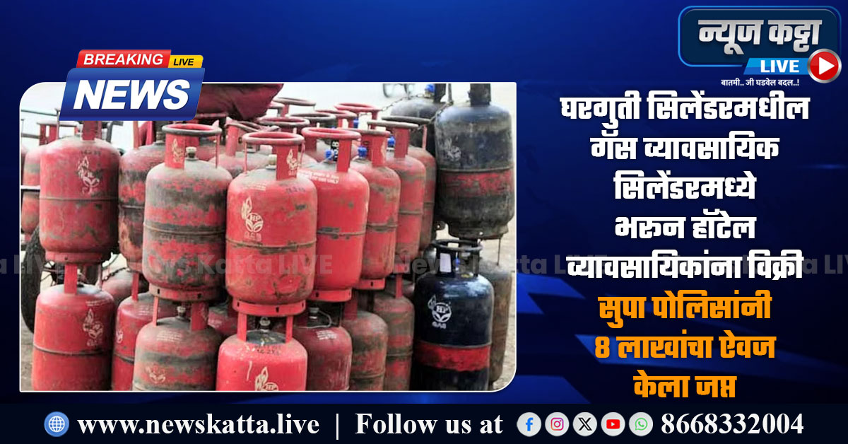 घरगुती गॅस सिलेंडर मोठ्या व्यावसायिक सिलेंडरमध्ये भरून हॉटेल व्यावसायिकांना विक्री करणाऱ्या रॅकेटचा सुपा पोलिसांनी पर्दाफाश केला आहे. सुपा पोलिसांनी केलेल्या कारवाईत ७० घरगुती सिलेंडरसह एक वाहन असा जवळपास ८ लाख १५ हजार रुपयांचा ऐवज जप्त करण्यात आला आहे. तर एकावर गुन्हा दाखल करत त्याला अटक करण्यात आली आहे.