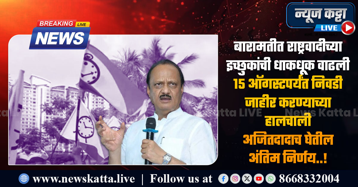 लोकसभा निवडणूक निकालानंतर बारामतीत पक्षांतर्गत बदलाच्या हालचाली सुरू झाल्या आहेत. अजितदादांच्या आदेशानंतर जवळपास सर्वच पदाधिकाऱ्यांनी राजीनामा दिला आहे. त्यानंतर अनेकांनी विविध पदांवर संधी मिळवण्यासाठी फिल्डिंग लावली आहे. मात्र याबाबतचा अंतिम निर्णय स्वत: अजितदादा घेणार आहेत. विशेष म्हणजे १५ ऑगस्ट रोजी अजितदादांकडून या पदांची घोषणा केली जाणार असल्याची माहिती मिळत आहे. त्यामुळे आता इच्छुकांची धाकधूक वाढली असून अजितदादा कुणावर विश्वास टाकतात याकडेच सर्वांचं लक्ष लागलं आहे.