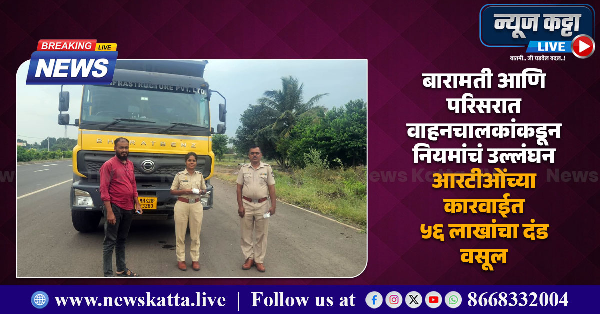 BARAMATI RTO : बारामती आणि परिसरात वाहनचालकांकडून नियमांचं उल्लंघन; आरटीओंच्या कारवाईत ५६ लाखांचा दंड वसूल