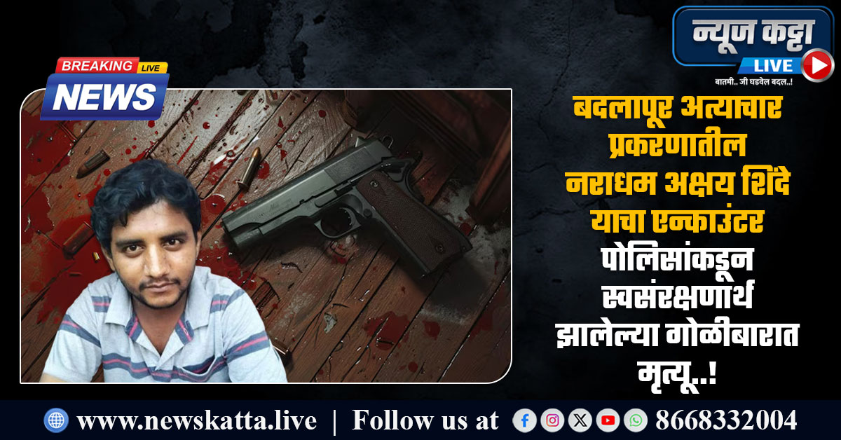 संपूर्ण महाराष्ट्राला हादरवणाऱ्या बदलापूरमधील शाळेतील अल्पवयीन मुलीवर अत्याचार प्रकरणात नवीन अपडेट समोर येत आहे. दोन चिमूरड्या मुलींवर अत्याचार करणाऱ्या अक्षय शिंदे याचा एन्काउंटर झाला आहे. रिमांडसाठी नेताना अक्षयने एका अधिकाऱ्याची रिव्हॉल्वर हिसकावून पोलिसांवर गोळीबार केला. त्यावेळी पोलिसांनी स्वसंरक्षणार्थ केलेल्या गोळीबारात अक्षयचा मृत्यू झाला आहे. या घटनेत एक पोलिस अधिकारीही जखमी झाले आहेत. दरम्यान, या घटनेनंतर राजकीय आरोप-प्रत्यारोपांना सुरुवात झाली आहे.