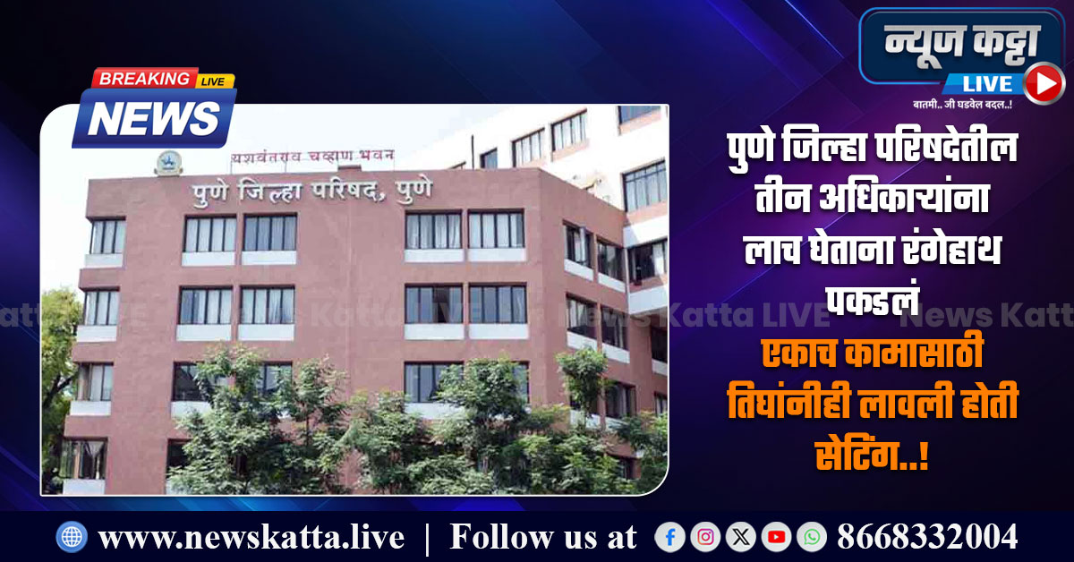 रस्त्याच्या कामांचे बिल काढण्यासाठी लाच घेताना पुणे जिल्हा परिषदेच्या बांधकाम विभागातील तीन अधिकाऱ्यांना रंगेहाथ पकडण्यात आलं आहे. लाचलुचपत प्रतिबंधक विभागाने ही कारवाई करत या लाचखोर अधिकाऱ्यांना अटक केली आहे. एकाचवेळी तीन अधिकाऱ्यांवर कारवाई होण्याची ही पहिलीच वेळ आहे. दरम्यान, या कारवाईनंतर जिल्ह्यात एकच खळबळ उडाली असून जिल्हा परिषदेतील बिलामागील टक्केवारीची चर्चा आता जोर धरू लागली आहे.