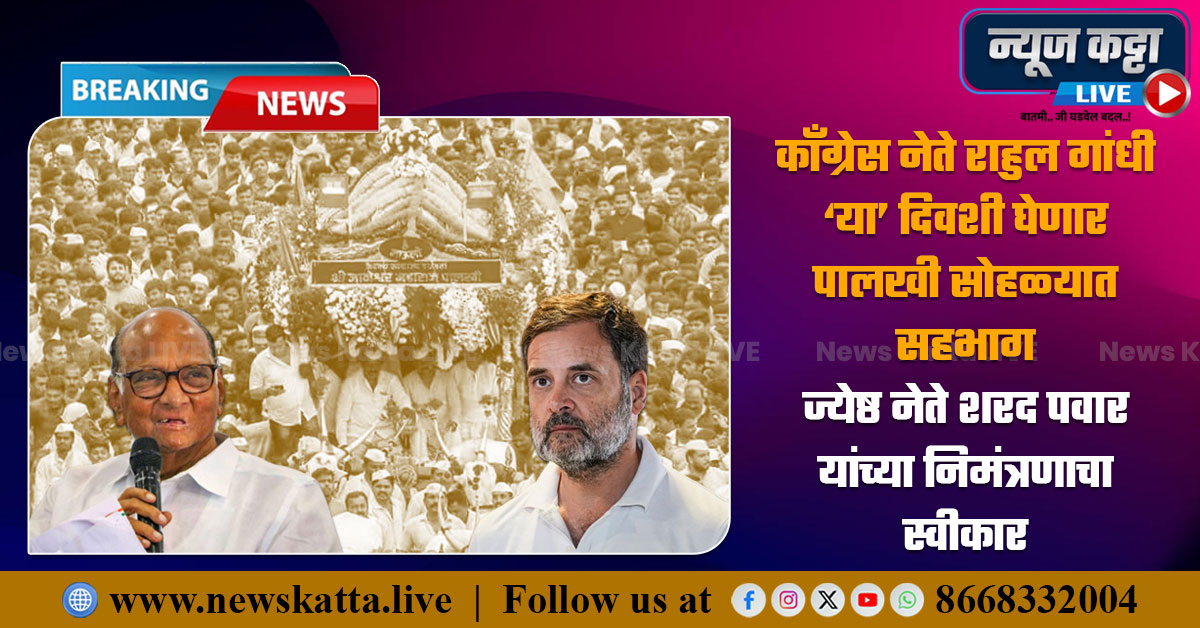 लोकसभेतील विरोधी पक्ष नेते तथा कॉँग्रेसचे नेते राहुल गांधी हे यावर्षी पालखी सोहळ्यात सहभाग घेणार आहेत. नुकतीच ज्येष्ठ नेते शरद पवार यांनी दिल्लीत राहुल गांधी यांच्या भेटीत याबाबत चर्चा केली होती. त्यानुसार राहुल गांधी हे १४ जुलै रोजी पालखी सोहळ्यात सहभागी होतील अशी माहिती समोर येत आहे. दरम्यान, आगामी विधानसभा निवडणुकीच्या दृष्टीने राहुल गांधी यांच्या वारीतील सहभागाकडे सर्वांचेच लक्ष लागले आहे.