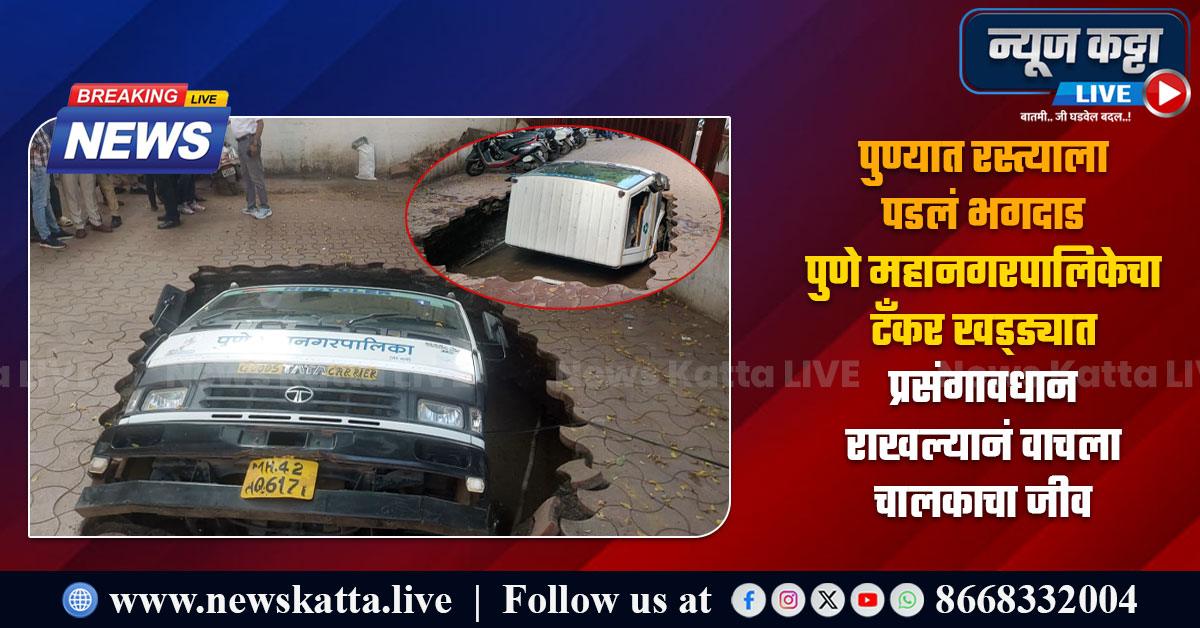 BIG NEWS : पुण्यात रस्त्याला पडलं भगदाड; पुणे महानगरपालिकेचा टँकर खड्ड्यात, प्रसंगावधान राखल्यानं वाचला चालकाचा जीव