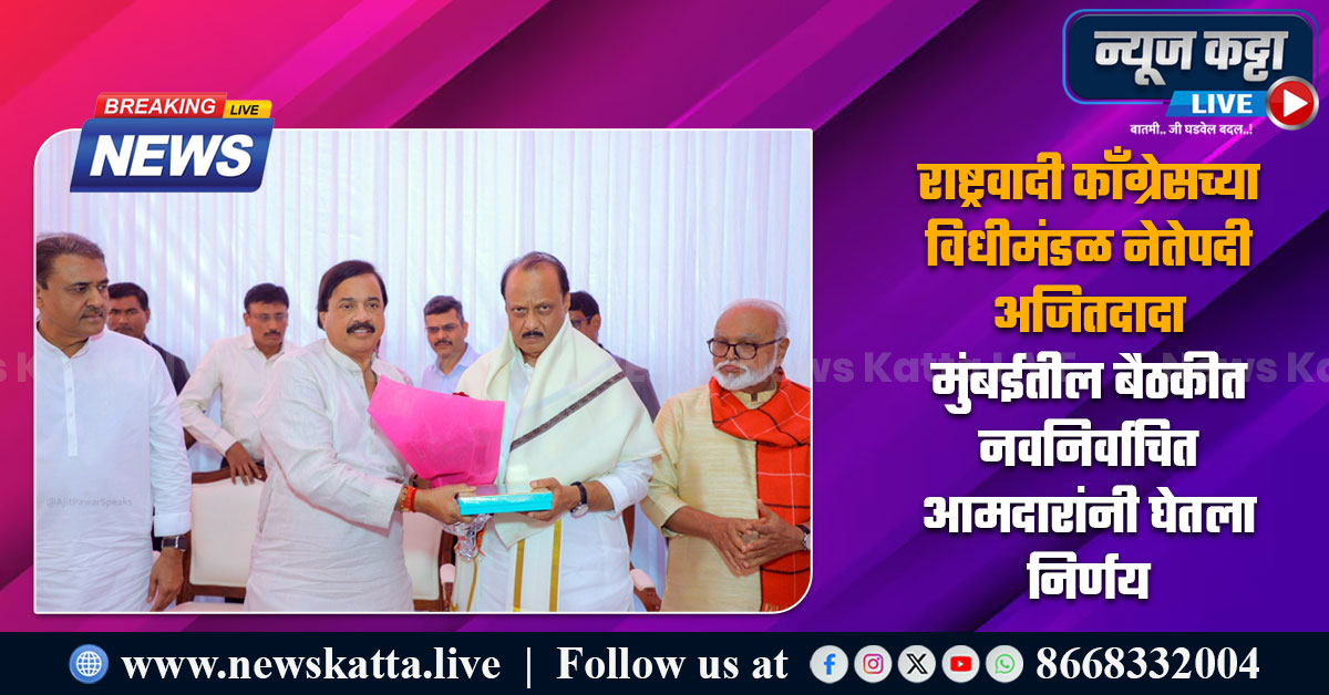 मुंबई : न्यूज कट्टा   राज्यात घवघवीत यश मिळवल्यानंतर आता राष्ट्रवादी कॉँग्रेस पक्षाच्या विधीमंडळ नेतेपदी उपमुख्यमंत्री अजित पवार यांची निवड करण्यात आली आहे. आज मुंबईतील