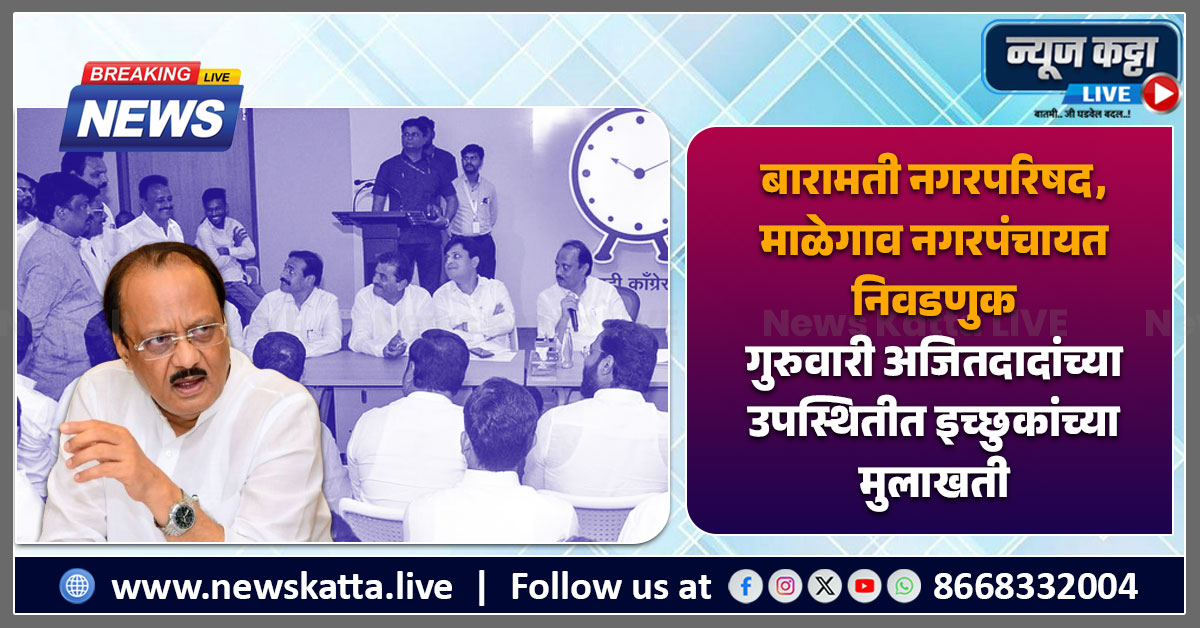 बारामती : न्यूज कट्टा सध्या राज्यात सर्वत्रच नगरपरिषद आणि नगरपंचायत निवडणुकीची धामधूम सुरू आहे. अशात बारामतीत नगरपरिषद निवडणुकीसाठी इच्छुक उमेदवारांच्या मुलाखती सुरू असतानाच बिग
