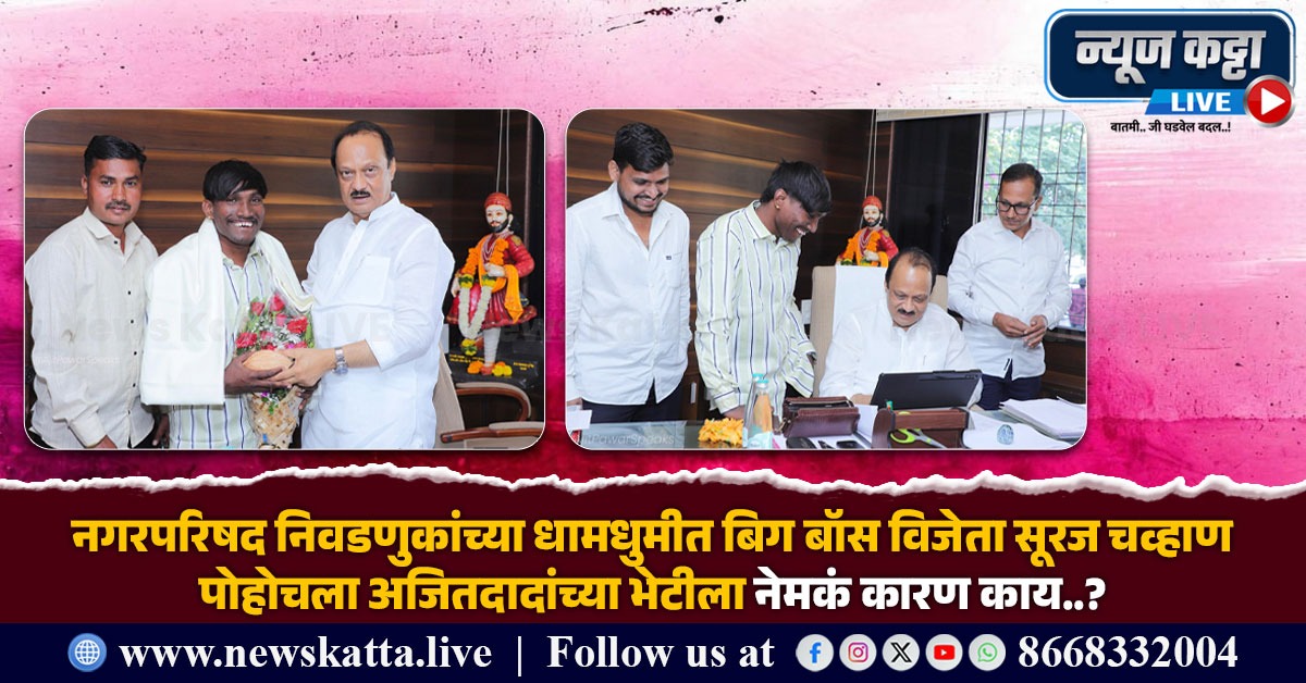 SURAJ CHAVHAN : नगरपरिषद निवडणुकांच्या धामधुमीत बिग बॉस विजेता सूरज चव्हाण पोहोचला अजितदादांच्या भेटीला; नेमकं कारण काय..?
