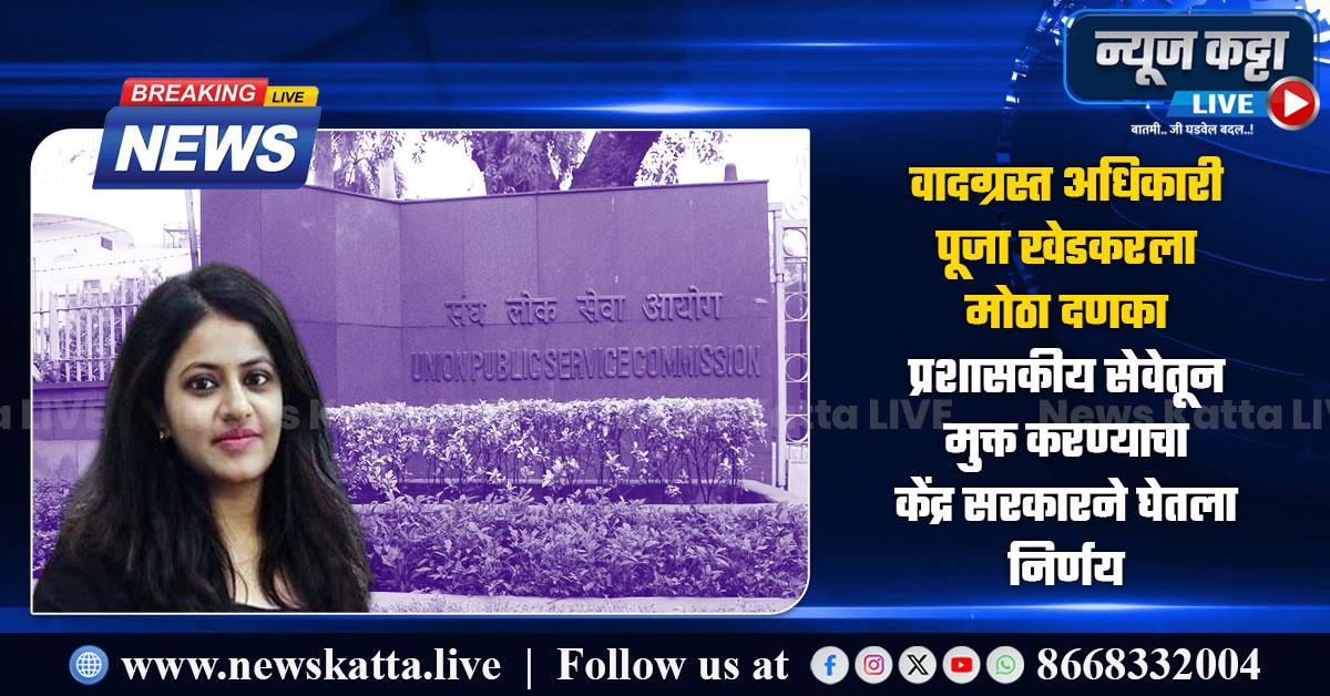 POOJA KHEDKAR : वादग्रस्त अधिकारी पूजा खेडकरला मोठा दणका; प्रशासकीय सेवेतून मुक्त करण्याचा केंद्र सरकारने घेतला निर्णय