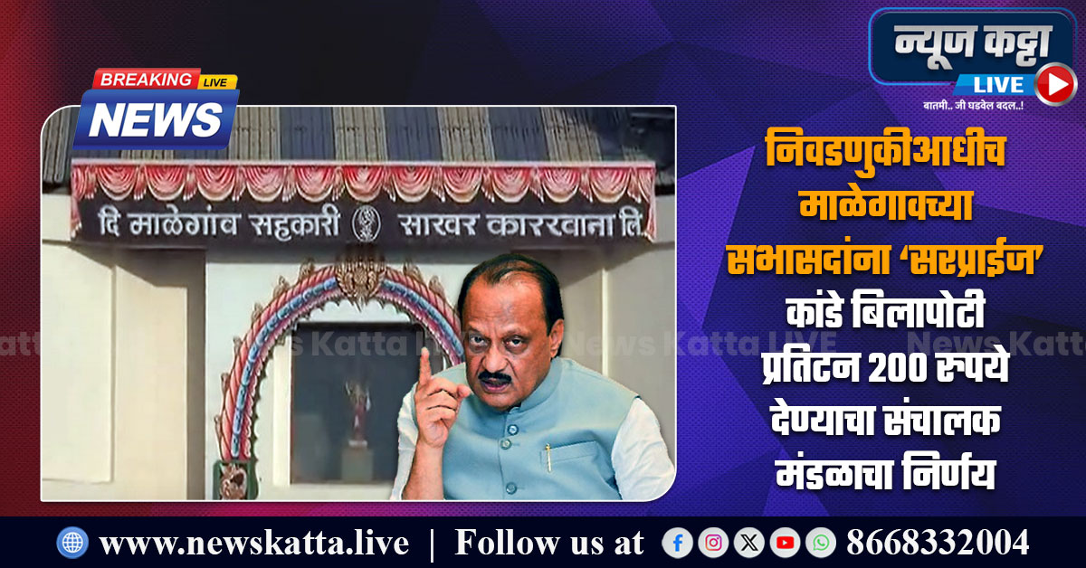 BIG NEWS : निवडणुकीआधीच माळेगावच्या सभासदांना ‘सरप्राईज’; कांडे बिलापोटी प्रतिटन २०० रुपये देण्याचा संचालक मंडळाचा निर्णय