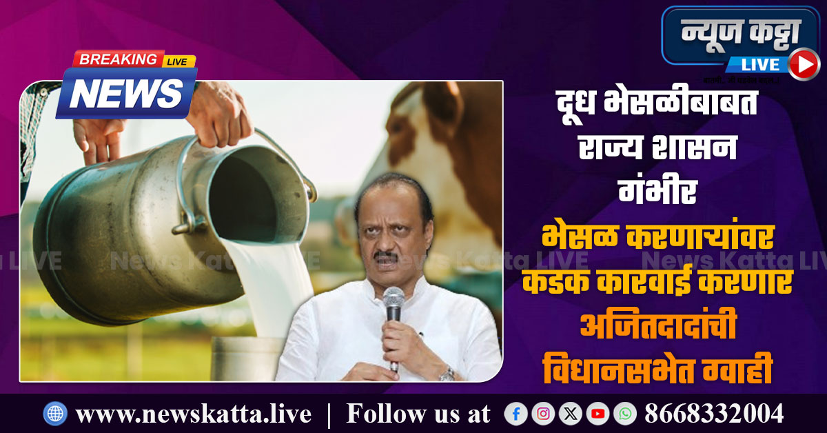 BIG BREAKING : दूध भेसळीबाबत राज्य शासन गंभीर; भेसळ करणाऱ्यांवर कडक कारवाई करणार : अजितदादांची विधानसभेत ग्वाही