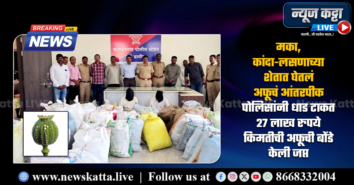 शेतात लावलेल्या मका पिकामध्ये बेकायदेशीरपणे अफूच्या झाडांची लागवड केल्याचा धक्कादायक प्रकार इंदापूर तालुक्यातील व्हावी येथे उघडकीस आला आहे. या प्रकरणी वालचंदनगर पोलिस आणि स्थानिक गुन्हे अन्वेषण शाखेच्या पथकाने केलेल्या कारवाईत तब्बल २७ लाख ५६ हजार रुपये किमतीची अफूची बोंडे आणि झाडे जप्त करण्यात आली आहेत. तसेच अफूची शेती करणाऱ्या तिघांना पोलिसांनी अटक केली आहे. या घटनेनंतर इंदापूर तालुक्यात एकच खळबळ उडाली आहे.