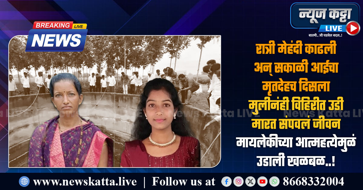 रात्री घरातील कामे उरकल्यानंतर मुलीनं उत्साहानं आपल्या आईच्या हातावर मेहंदी काढली. सकाळी शेतातल्या विहिरीत आईचा मृतदेह पाहिला अन् तिनंही विहिरीत उडी मारून स्वत:चं जीवन संपवल्याची घटना समोर आली आहे. छत्रपती संभाजीनगर जिल्ह्यातल्या खुलताबाद तालुक्यात ही धक्कादायक घटना घडली आहे. या दोघींनी आत्महत्या का केली याचं कारण अद्याप स्पष्ट झालेलं नाही. मात्र या घटनेनंतर मोठी खळबळ उडाली आहे.