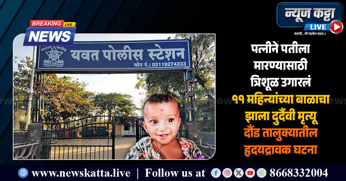 पती-पत्नीचा वाद सुरू असताना चुलतीने रागाच्या भरात त्रिशूळाने केलेल्या हल्ल्यात एका निष्पाप ११ महिन्यांच्या बालकाचा दुर्दैवी मृत्यू झाल्याची घटना गुरुवारी सकाळी दहा वाजण्याच्या सुमारास घडली. दौंड तालुक्यातील केडगाव परिसरात घडलेल्या या हृदयद्रावक घटनेमुळे परिसरात हळहळ व्यक्त होत आहे.